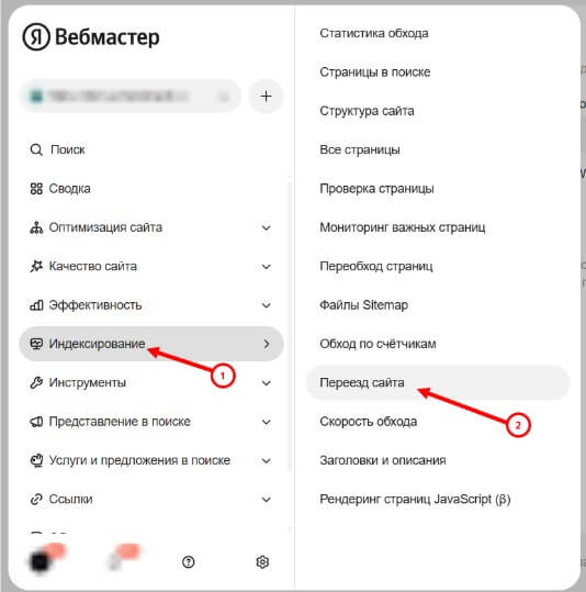 Вебмастер переезд сайта осуществляется через специальный инструмент в разделе «Индексирование» → «Переезд сайта». Здесь вы указываете, что сайт переезжает на новый адрес, и выбираете новый домен из списка добавленных сайтов.